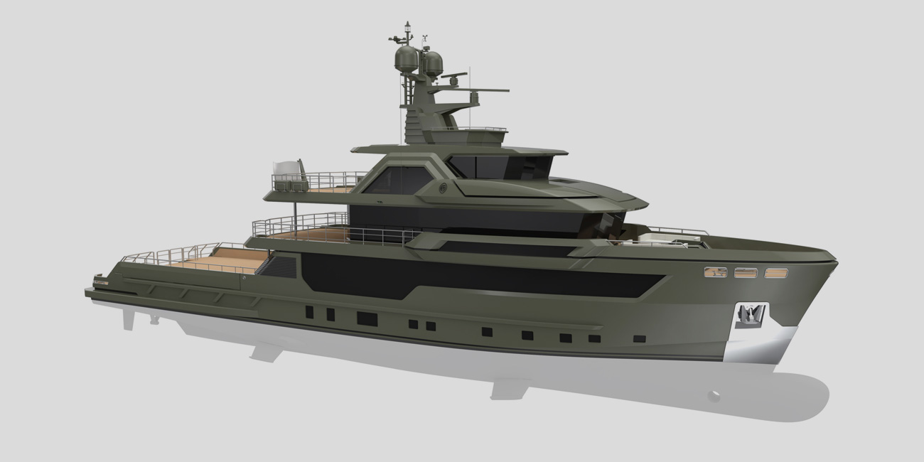 The yacht will be equipped with two pairs of electro-driven stabilizing fins. This solution has