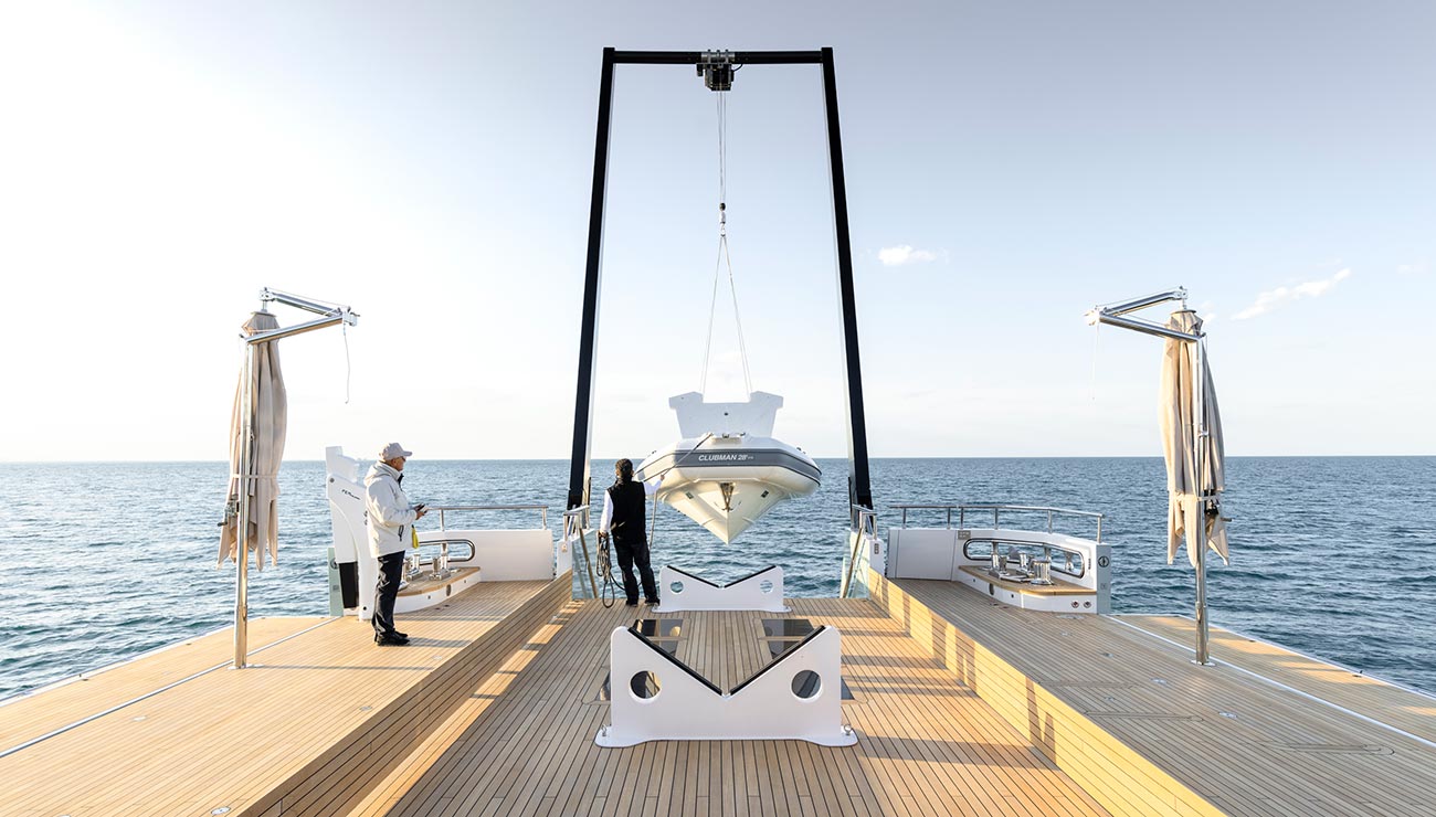 collaboration with AMS (Advanced Mechanical Solutions) to provide the yacht with a powerful crane to launch an 8.5m tender
