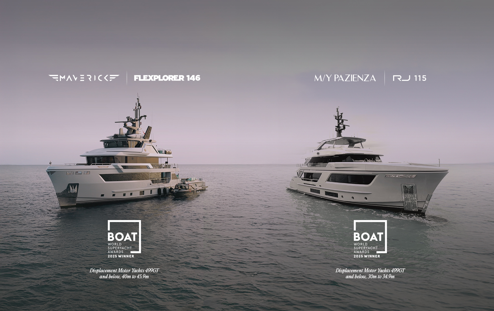 CDM is thrilled to announce that the Flexplorer 146 Lt. Pete 'Maverick' Mitchell has been awarded the WSA in the Displacement Motor Yachts category for yachts 499GT and below, ranging from 40m to 45.9m, and the RJ115 Pazienza was honored in the Displacement Motor Yachts category 499GT and below, ranging from 30m to 39.9m.