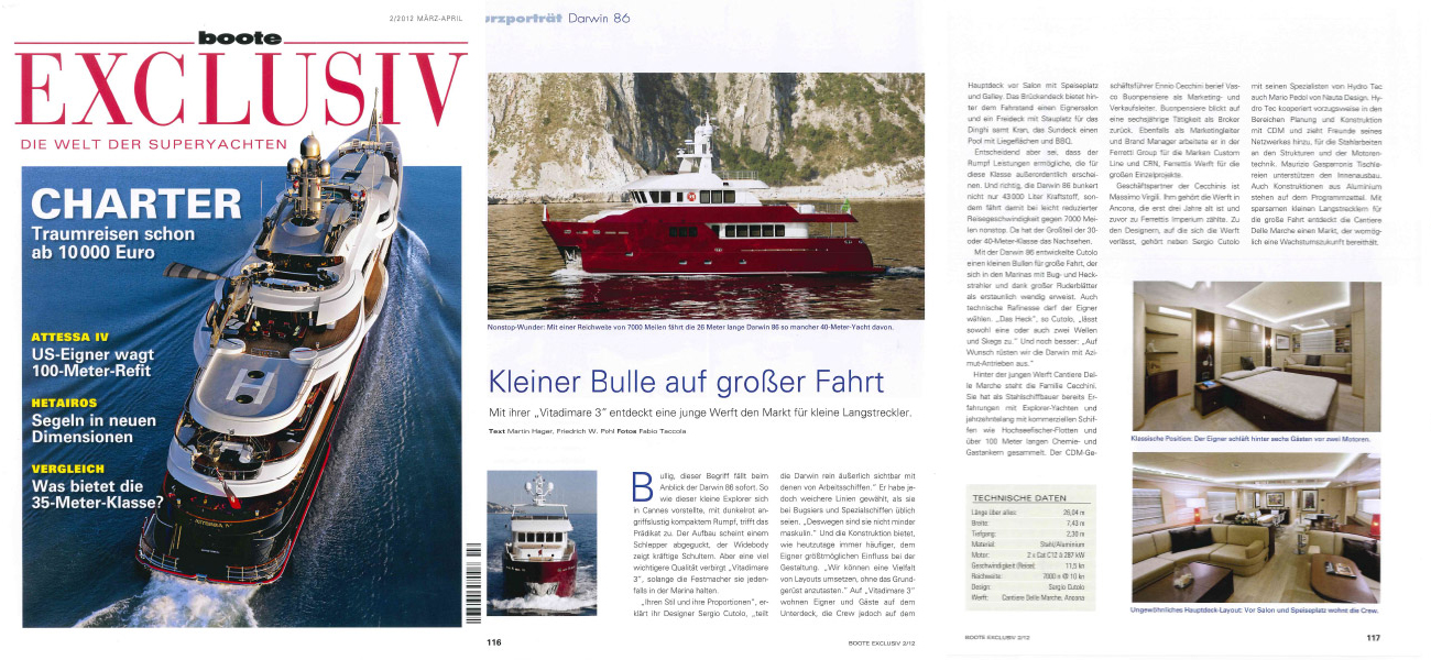 Cantiere delle Marche, il neonato cantiere italiano con posizione ad Ancona, ha lanciato "Vitadimare 3" il suo primo 26 metri di lunghezza, un robusto Explorer della classe di Darwin.