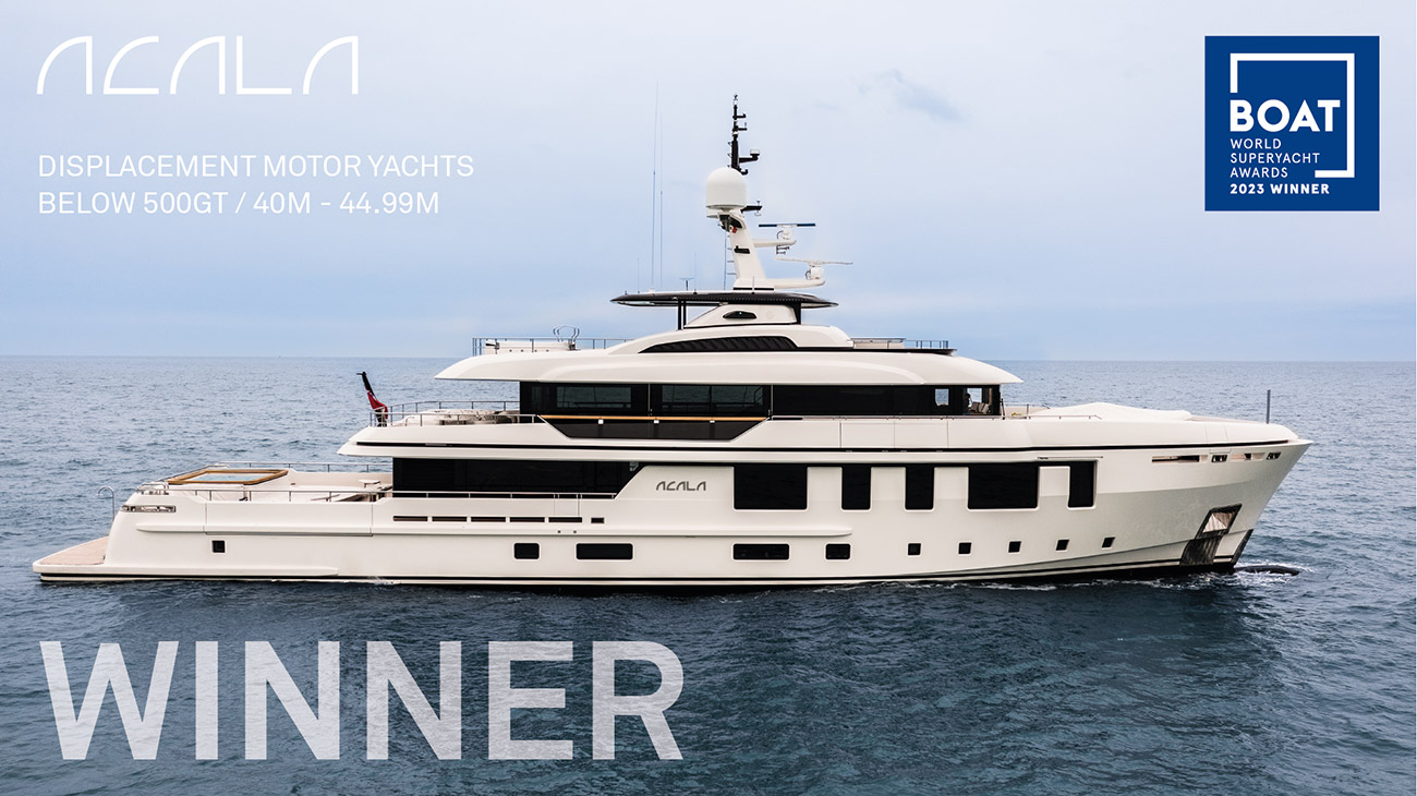 Cantiere delle Marche has won the 2023 World Superyacht Awards with the stunning M/Y ACALA, in the category DISPLACEMENT MOTOR YACHTS 499GT AND BELOW, 40M TO 44.9M.