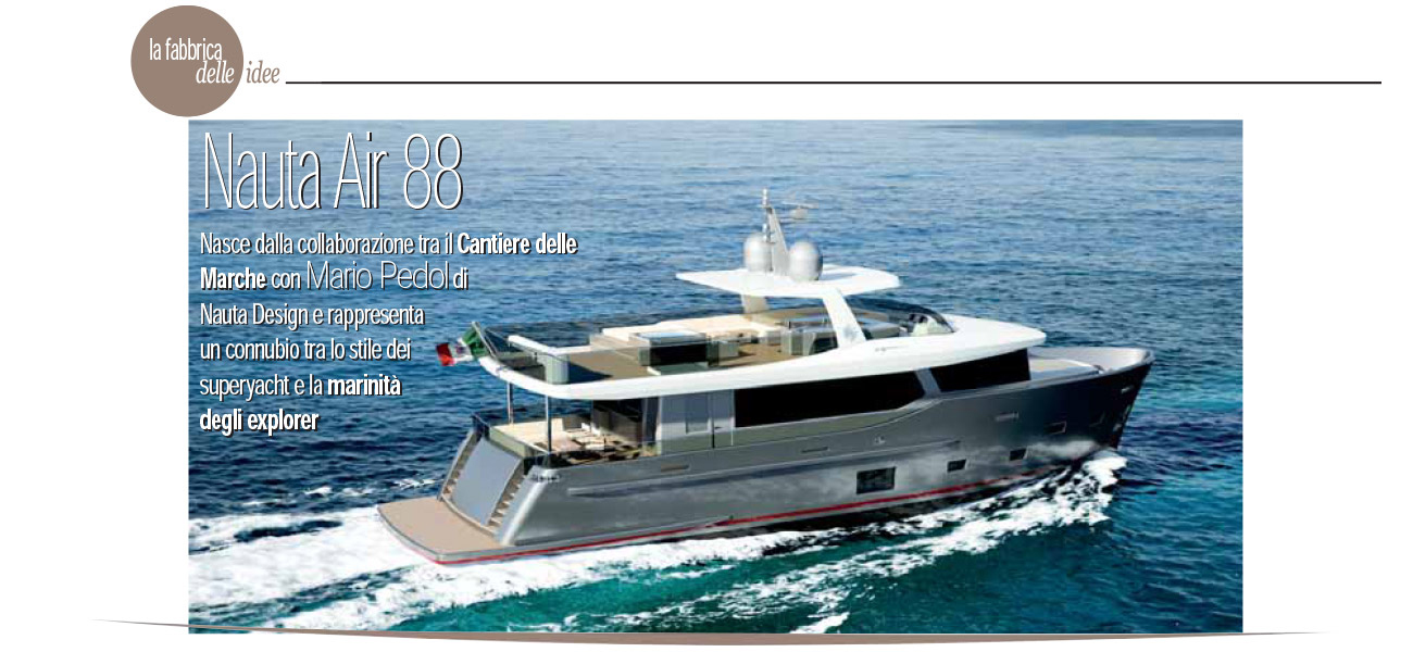 Nasce dalla collaborazione tra il Cantiere delle Marche con Mario Pedol di Nauta Design e rappresenta un connubio tra lo stile dei superyacht e la marinità degli explorer.