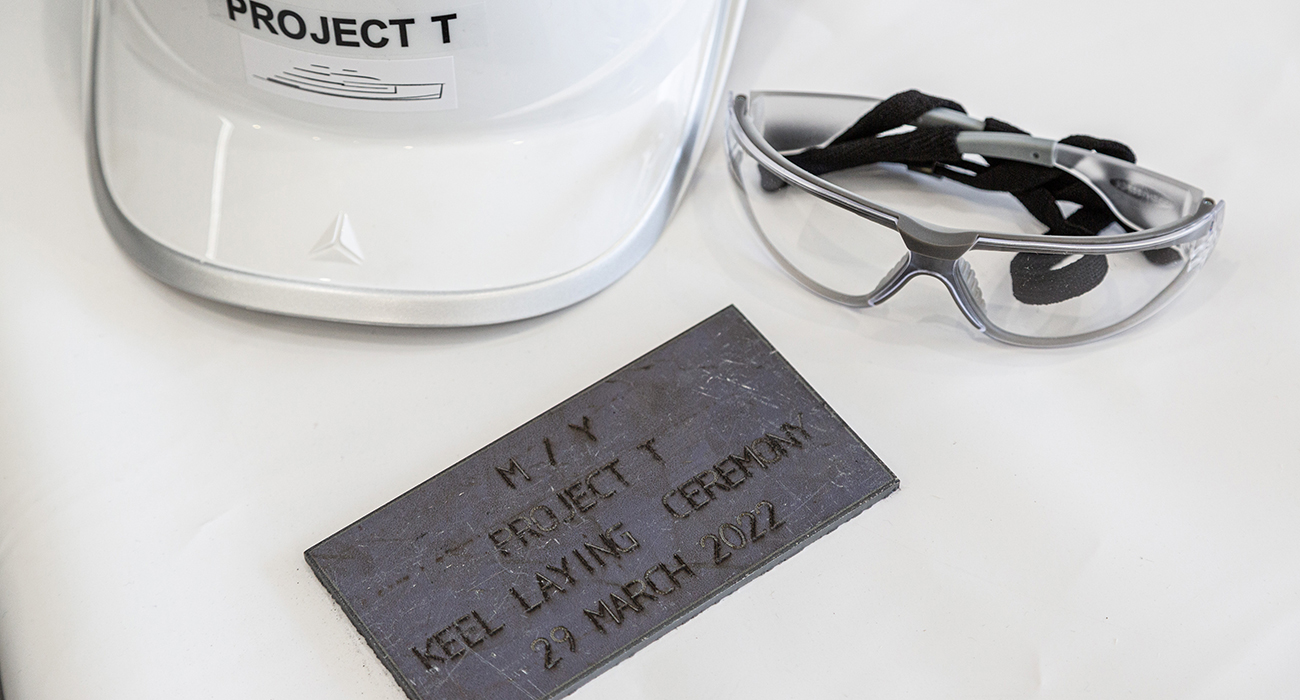 custom explorer yacht Project T at a keel laying ceremony. The enthusiast Owner welded a small
