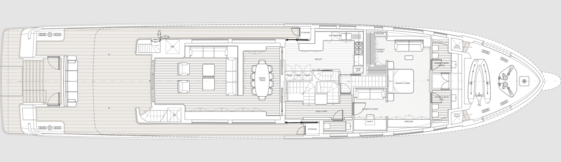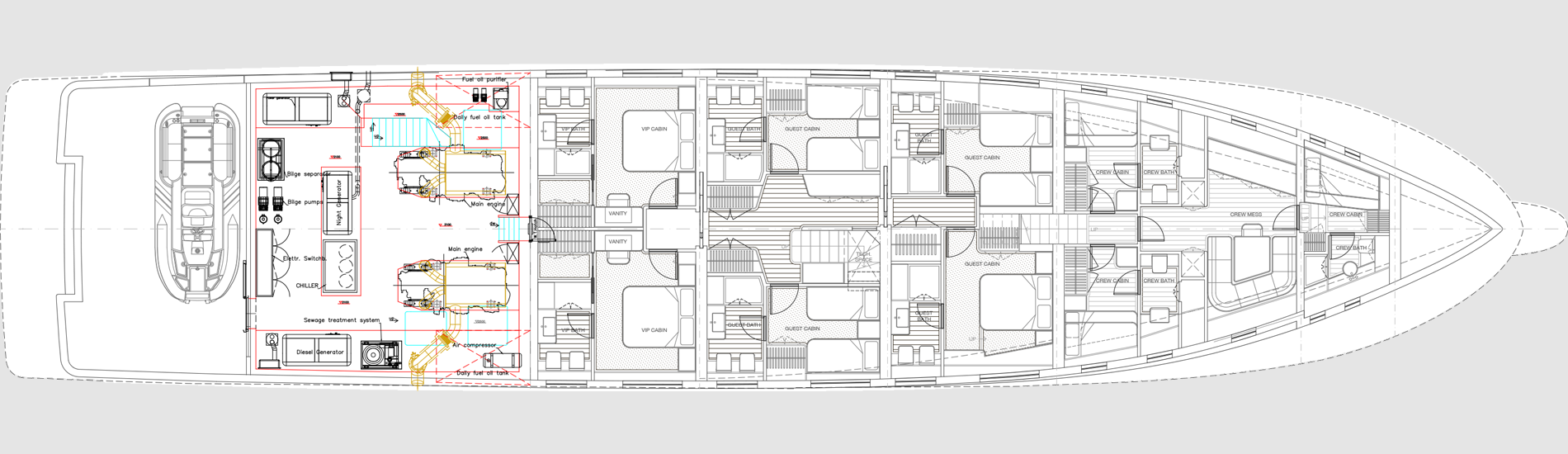 Crowbridge, a full custom explorer yacht, is another example of CdM’s ingenious approach to yachting. Her clean and well-defined lines are undoubtedly those of a pure expedition vessel besides being cohesive to CdM’s tradition. She encompasses all qualities that define a top-class explorer yacht designed to handle all weather conditions thanks to a very efficient, sea-kindly and sea-worthy hull form. Safety and comfort of guests and crew are key points of her design. High-end equipment in a large and well laid out engine room designed for ease of service by crew is another fundamental feature of Explorer 40.22.