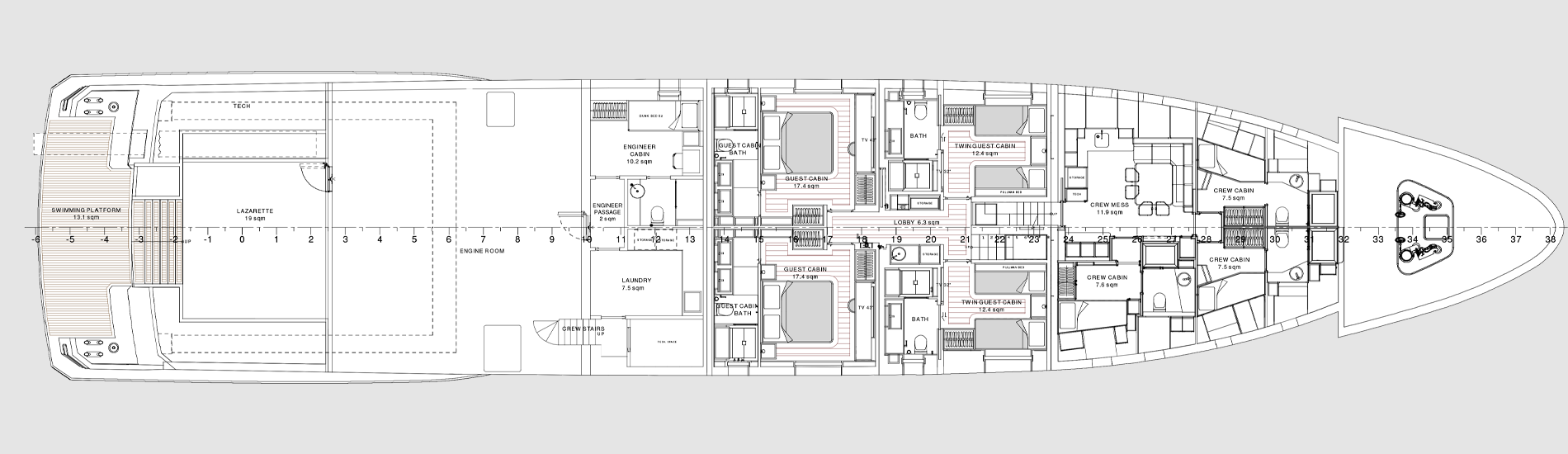 12 (+4 Pullman Bed) / 6 Cabins