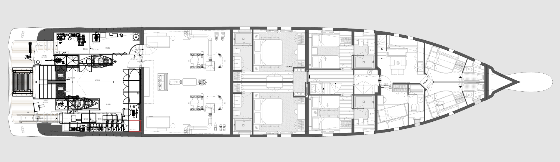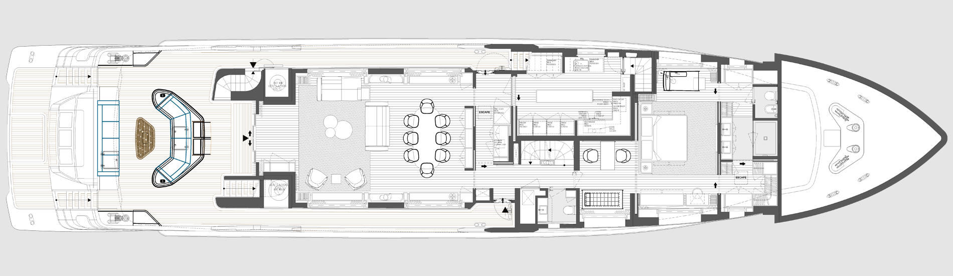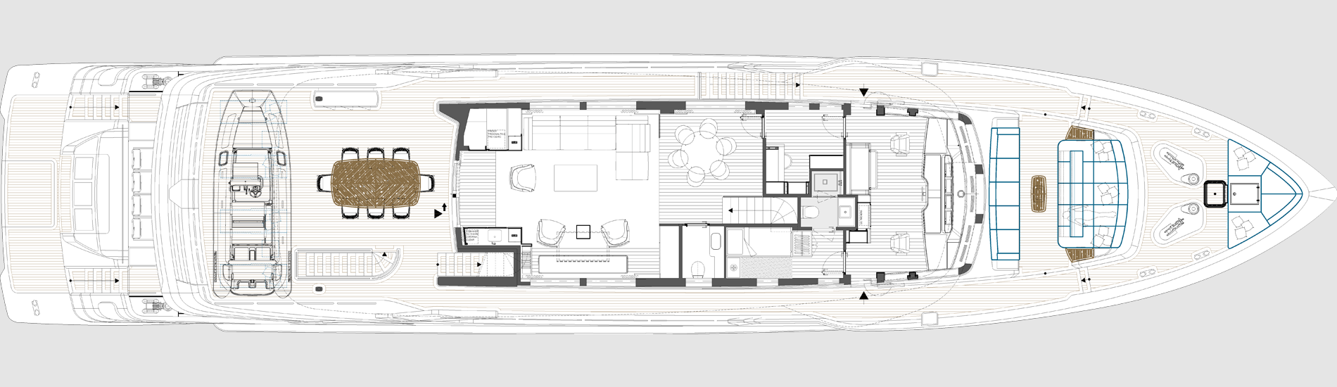 RJ 130 is a luxurious explorer yacht for sale featuring a great wealth of exterior spaces with a real go- anywhere, do-anything expedition pedigree. Its gracefully severe silhouette bears the unmistakable signature of Francesco Paszkowski who, in addition to its noteworthy geometry, introduced countless well-conceived features in terms of logistics, livability and functionality. With this yacht Paszkowski succeeded in treading a line between innovative lines and timelessness. Cantiere delle Marche has, in turn, showcased to the yachting world that it is the yacht’s inherent design and technical features, rather than appearance, that define an explorer yacht.